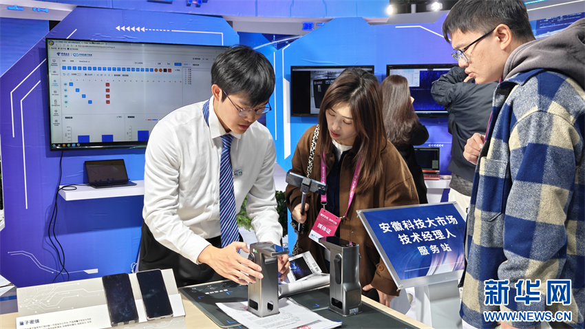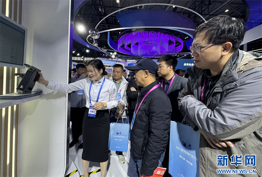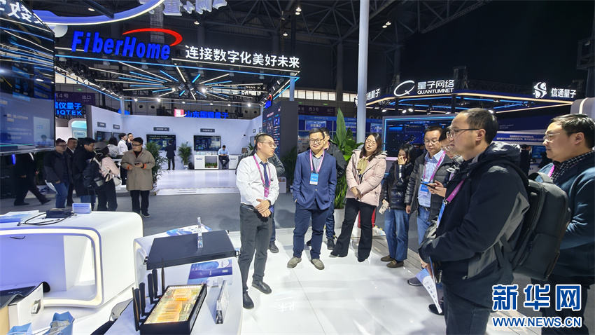 11月29日,在量子产业创新成果展现场,参展商向观众介绍量子科技产品。新华网发(廖宇翔 摄)