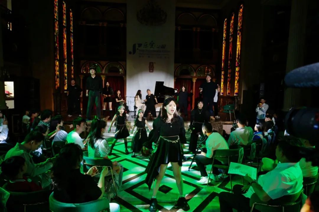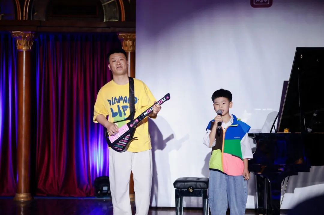 舞台上,艺术学院的学生们和小朋友们化身自然精灵,通过拟声互动游戏模拟鸟鸣、兽语,让观众沉浸式感受声音的疗愈魔力。音乐成了流动的多巴胺,打破了舞台边界,让现场的每个人都成为这场生命轮回舞台的参与者。
